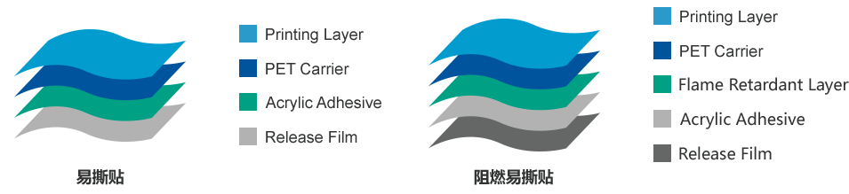 with a printing layer on one side, flame retardant layer & adhesive layer on the other side. It is used for the fixing and disassembling of the mobile phone battery.
